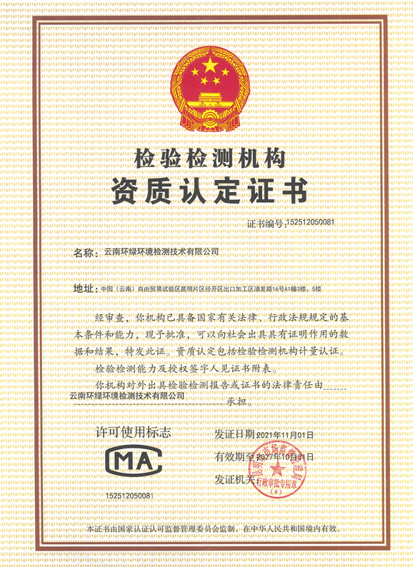 本次评审是云南环绿环境检测技术有限公司接受的第二次复评审。通过两天的评审专家组认为,云南环绿质量管理体系运行有效,实验环境、仪器设备均能满足检测要求,检测人员具有相应的专业技术水平,具备认可范围内各项参数所需的专业检测能力。同时,专家组也给云南环绿提出了很多宝贵的意见和建议,随后云南环绿根据专家组的意见进行了积极的整改,最终于2021年11月1日取得了新的资质证书。