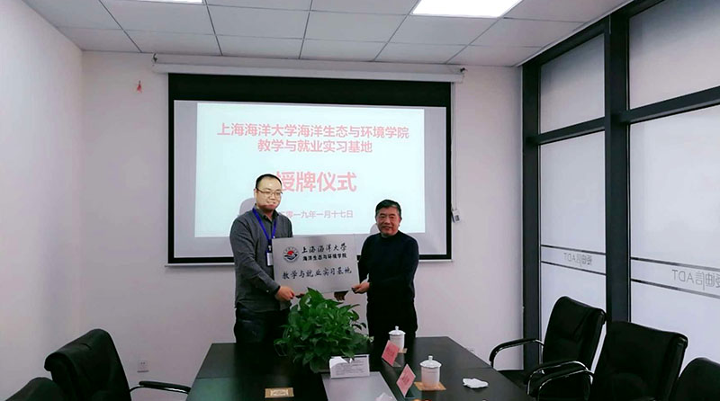 2019年1月17日,在安博官网平台上海总部,迎来了上海海洋大学的校领导和老师。环境学院的院长和副院长以及辅导员等来到上海总部授予“教学与就业实习基地”的牌匾,并对校企之间的合作进行了探讨。